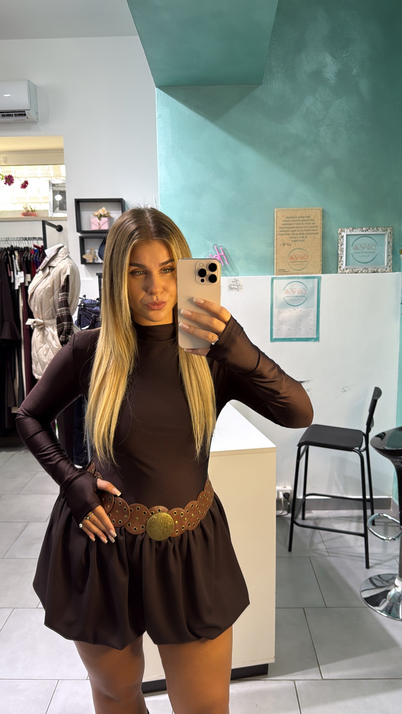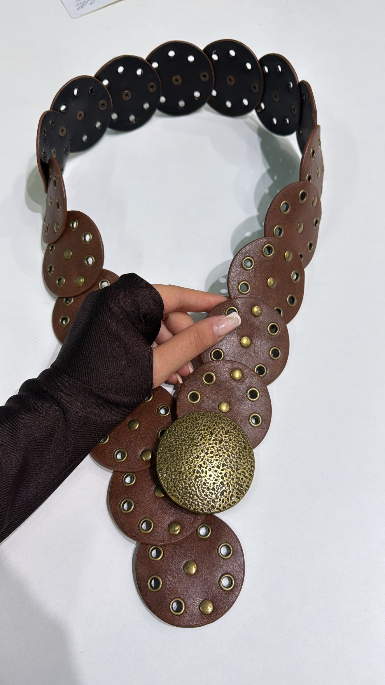 Cinturone marrone con dettagli oro, regolabile su tutta la lunghezza