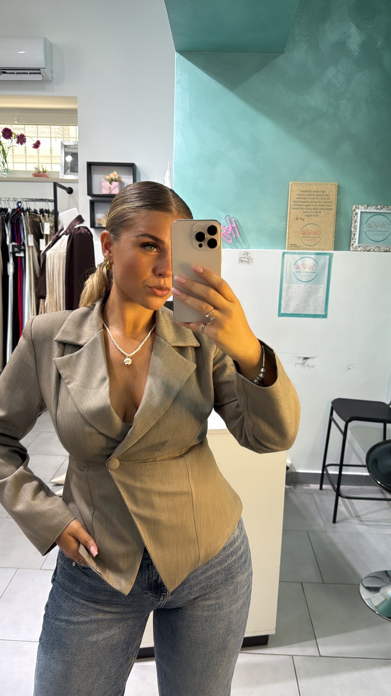 Giacca avvitata con bottoni in vita e spalline imbottite . Calzata regolare, taglia unica