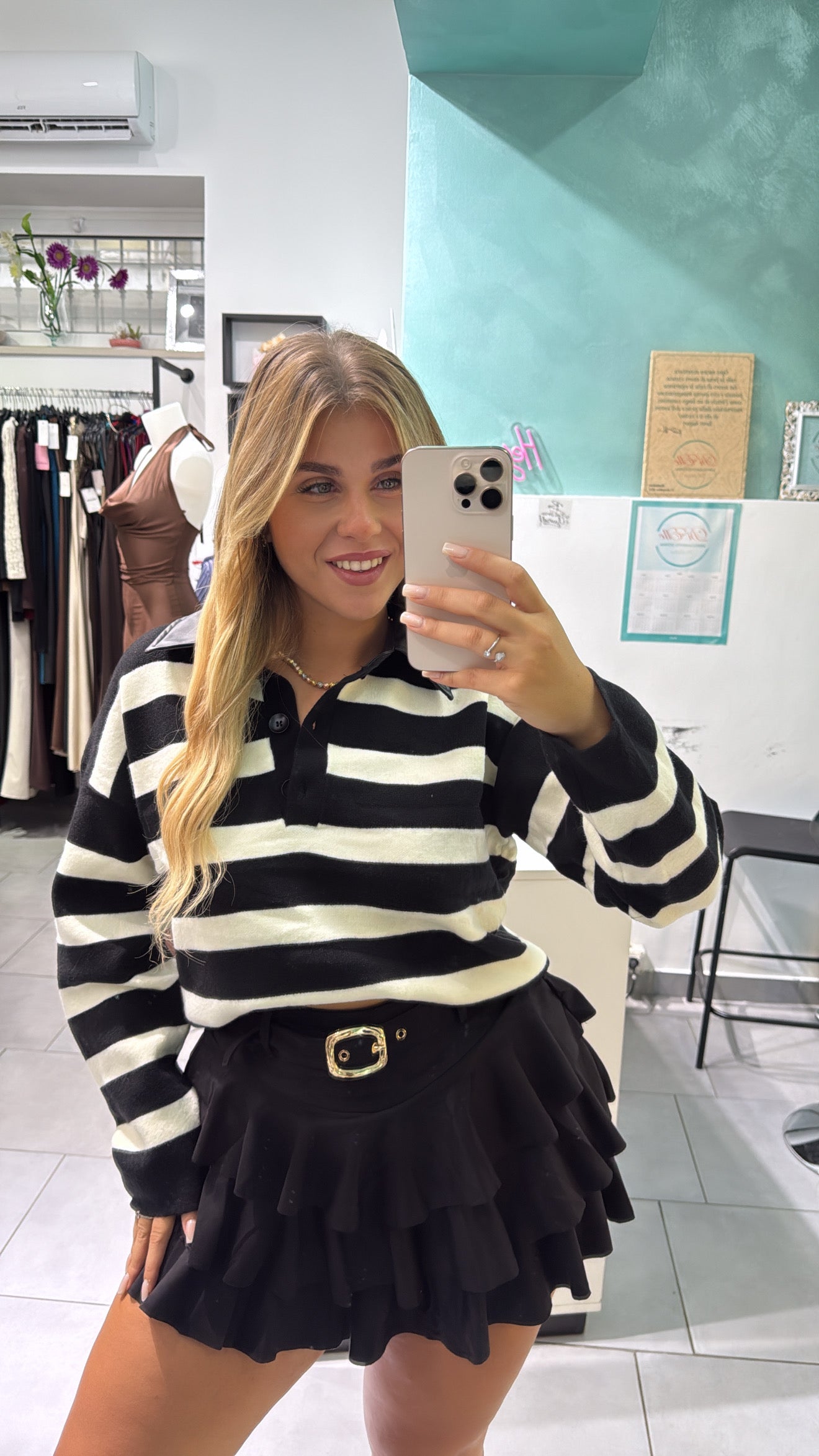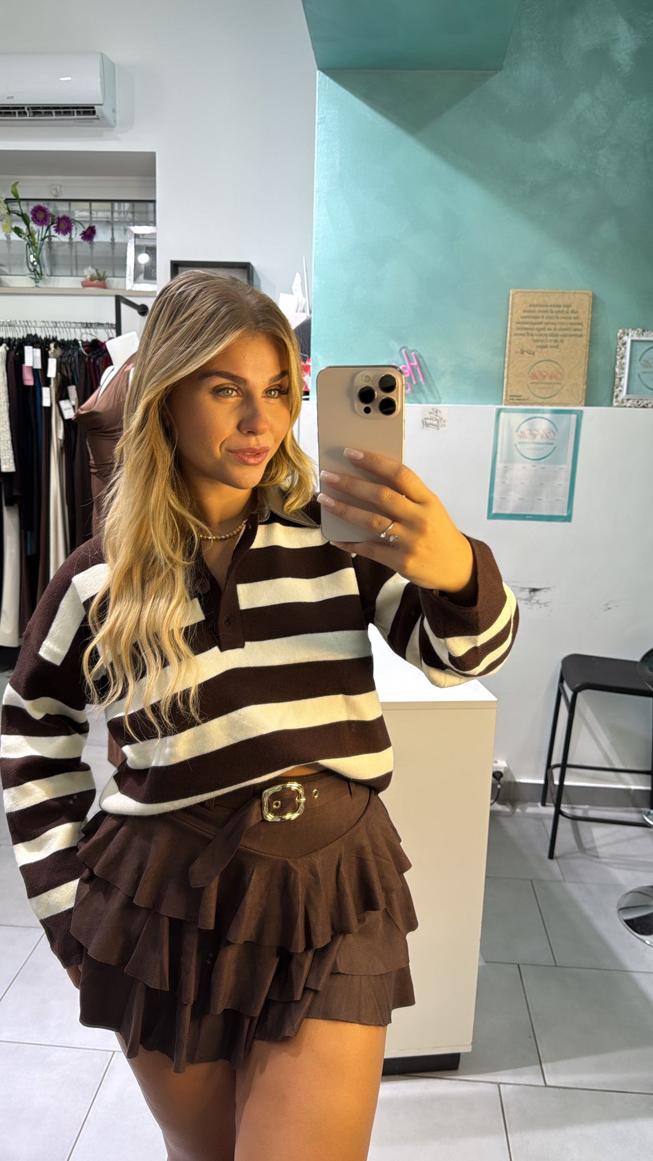 Gonna con culotte sottostante a balze in tessuto di camoscio. Elasticizzata, calzata regolare. La modella indossa taglia M/L