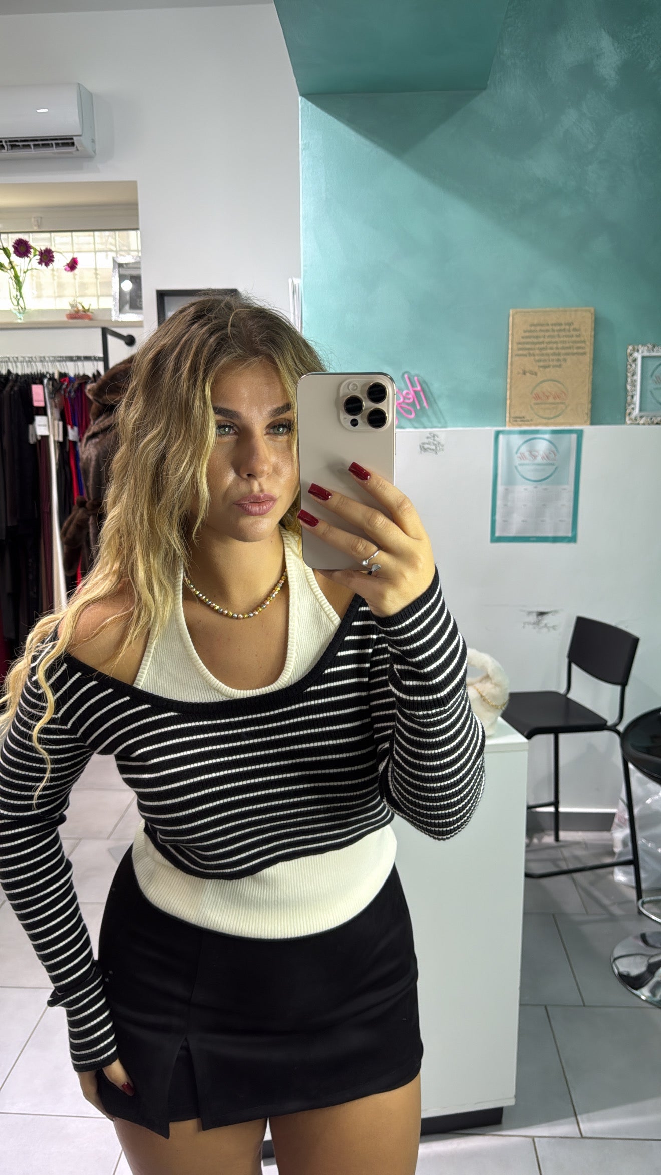 Maglia con canotta sottostante e top corto a righe, calzata regolare, tessuto elasticizzato . Taglia unica