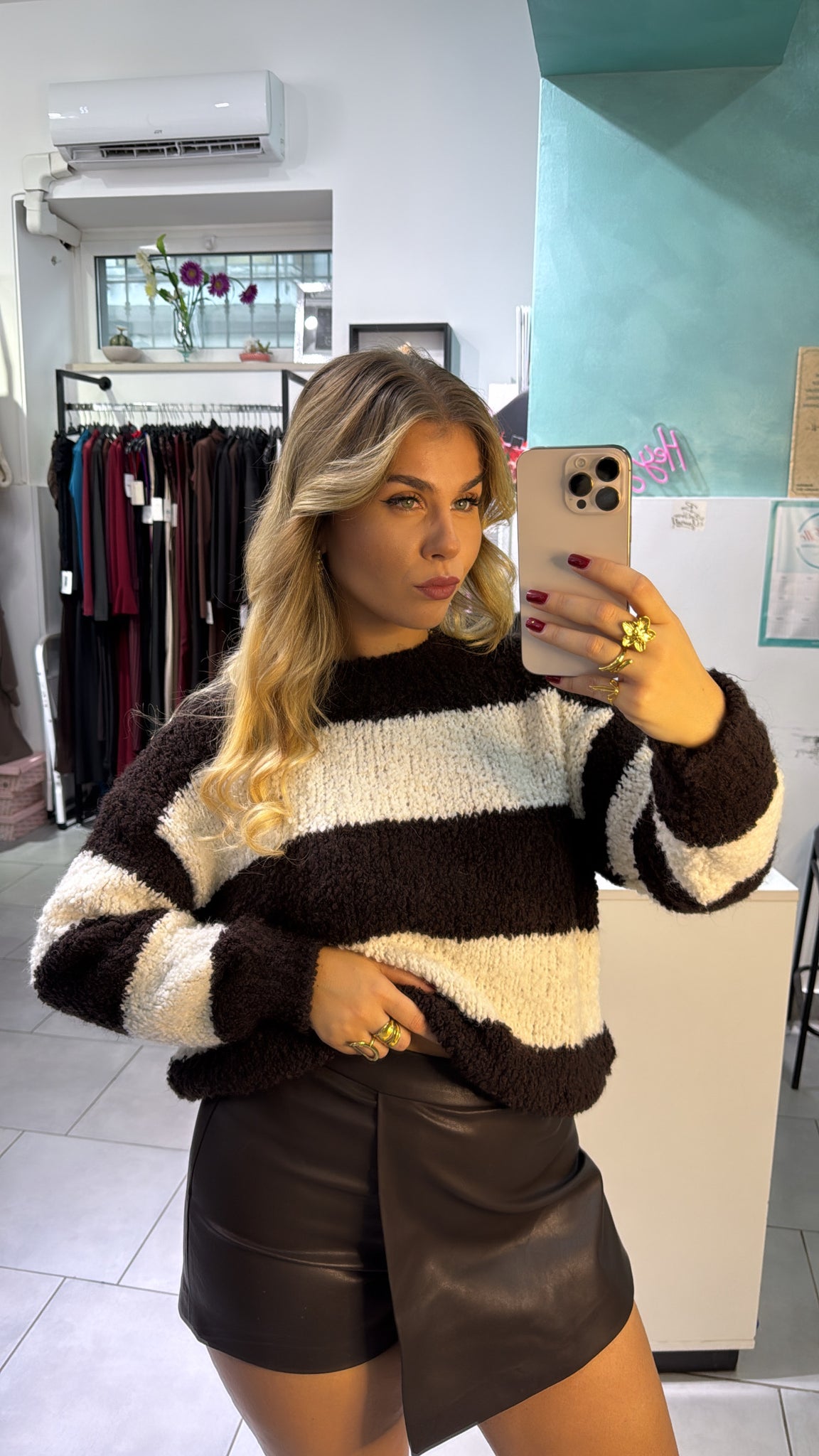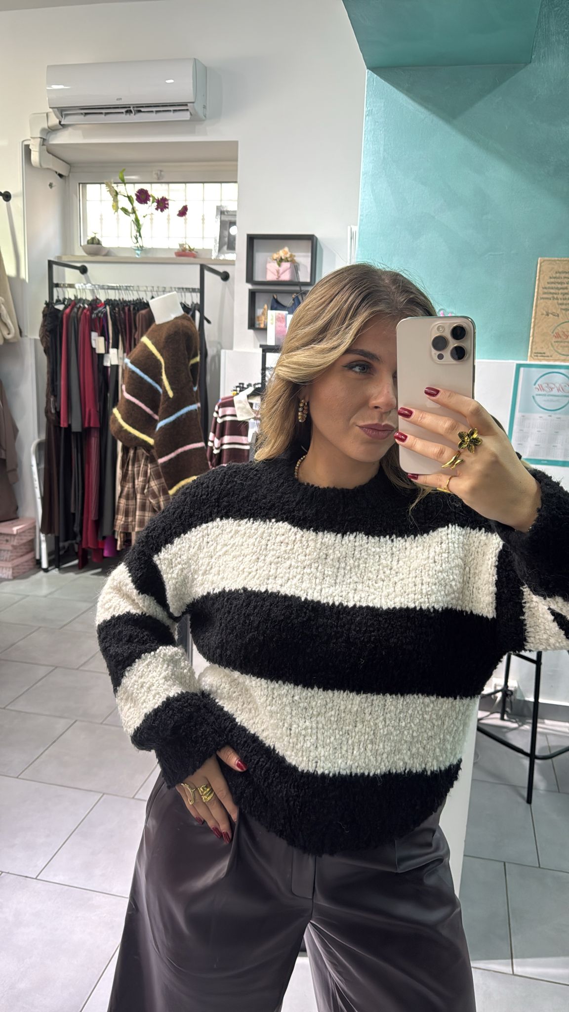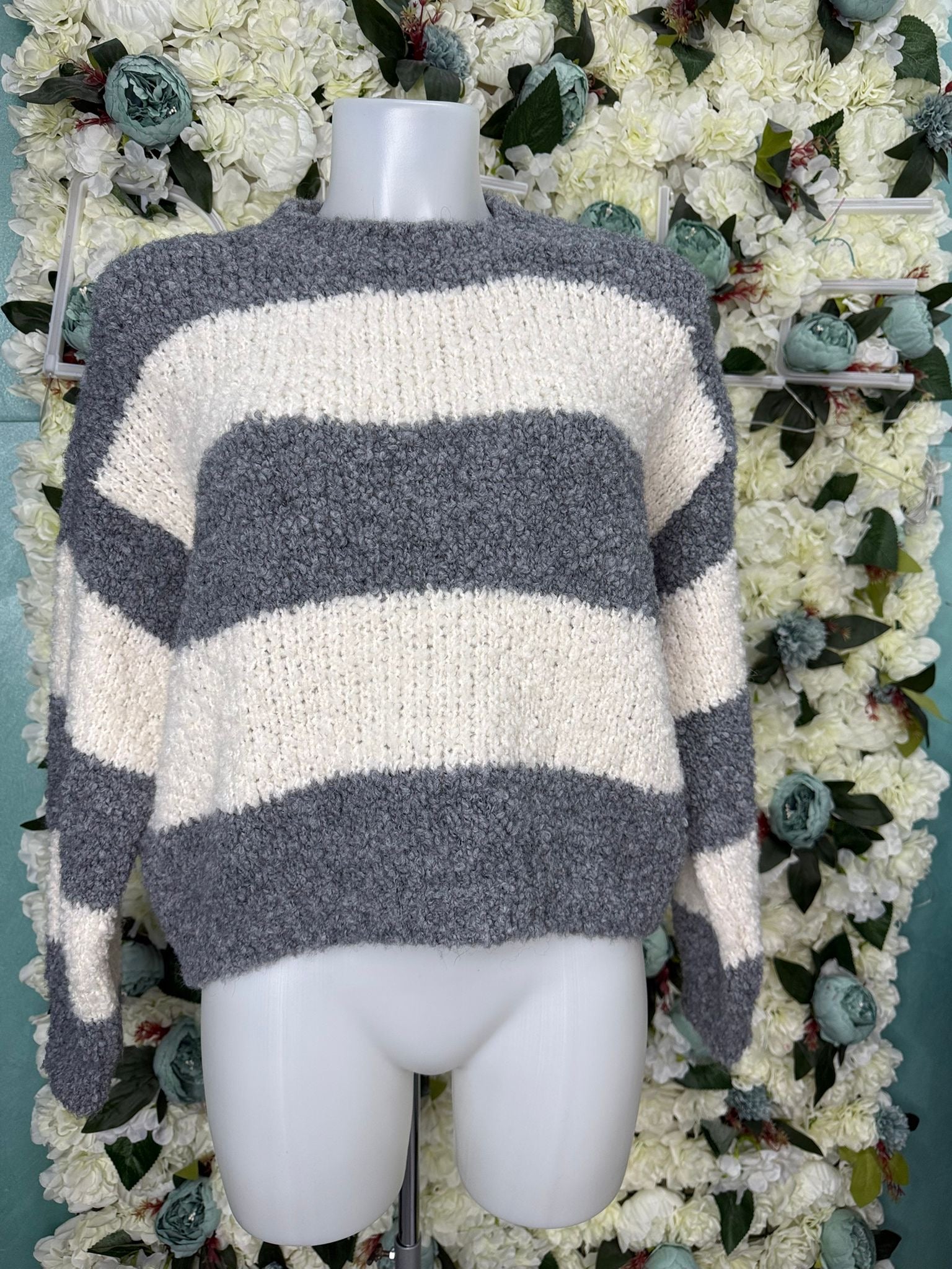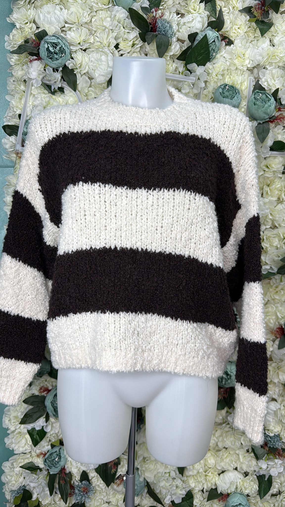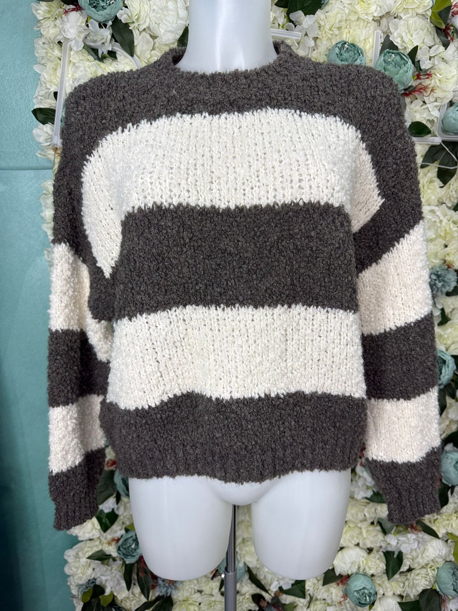 Maglione di lana con fantasia a righe, calzata regolare, tessuto elasticizzato. Taglia unica