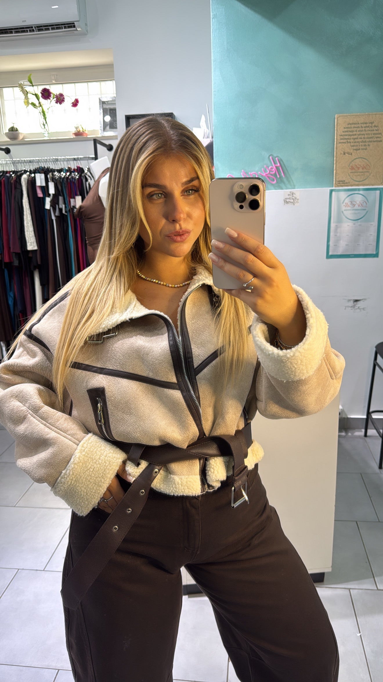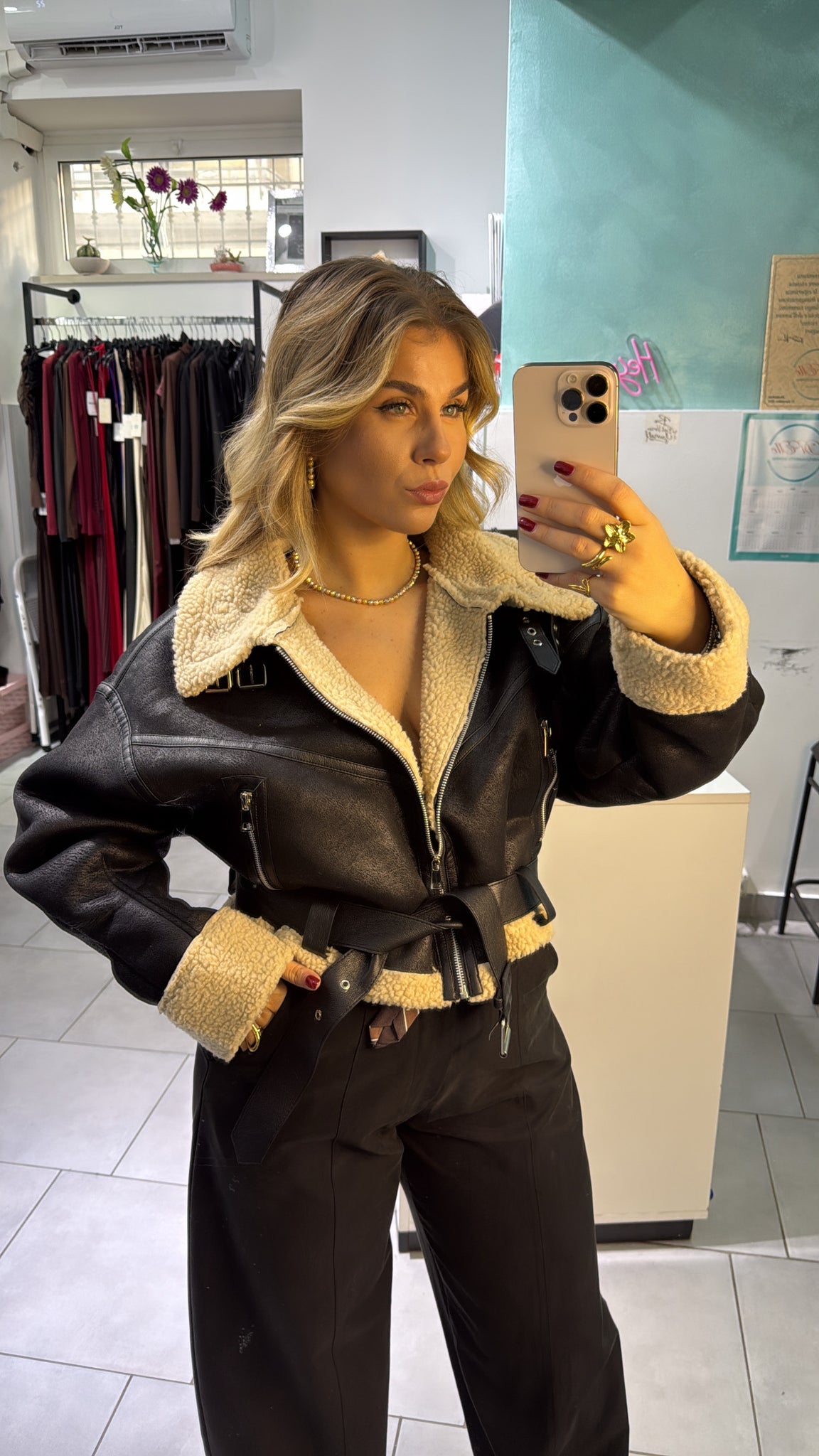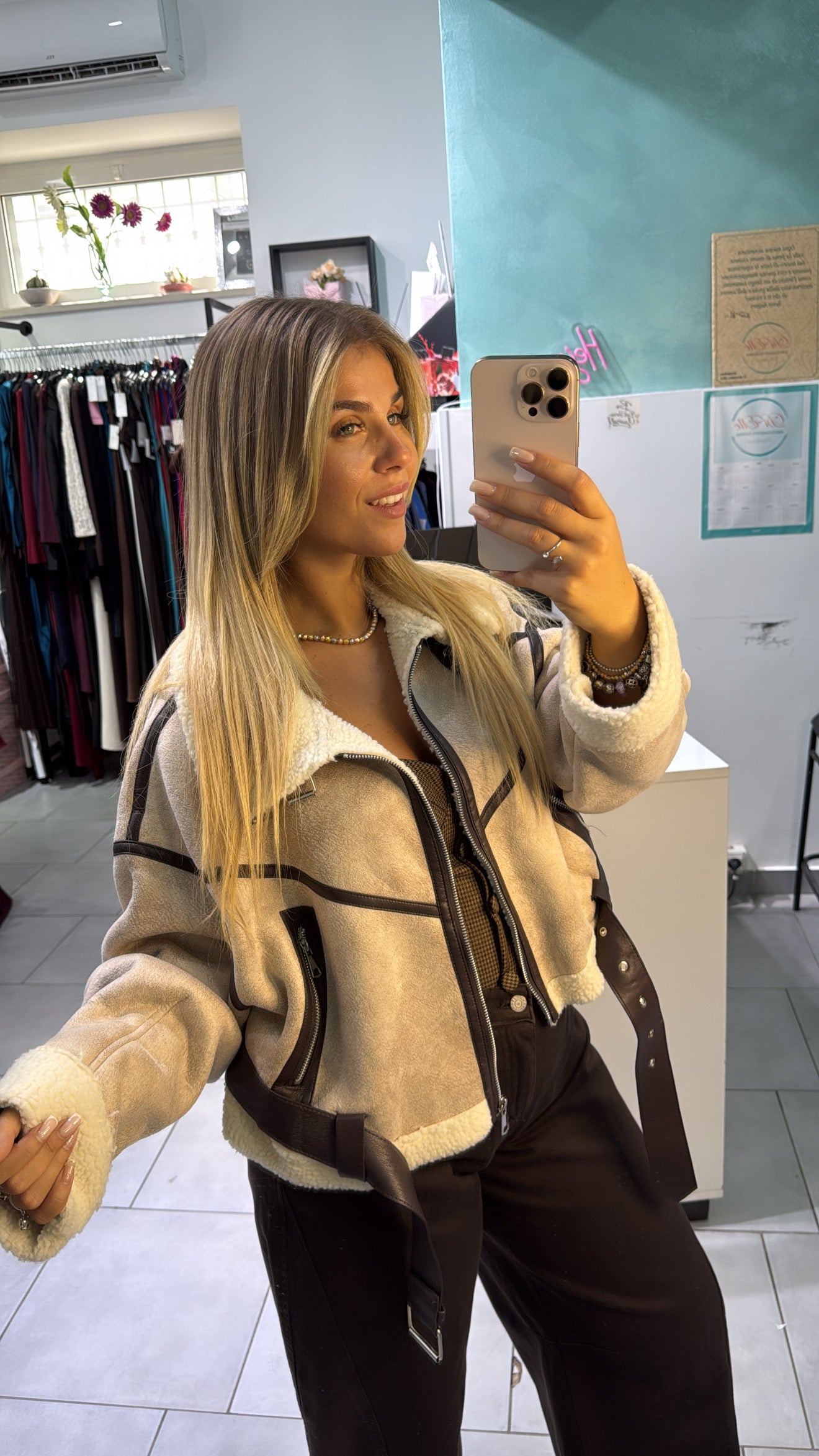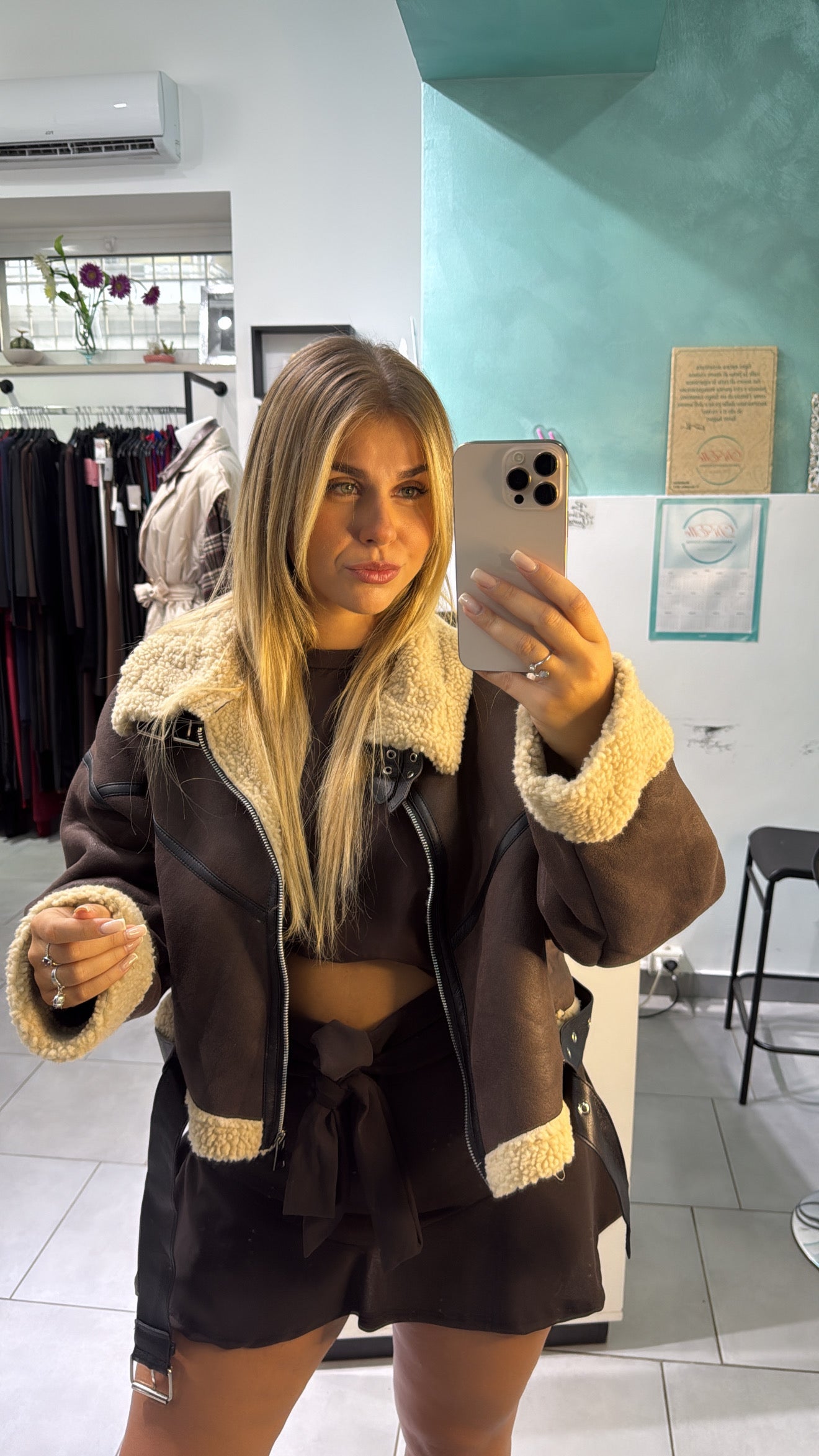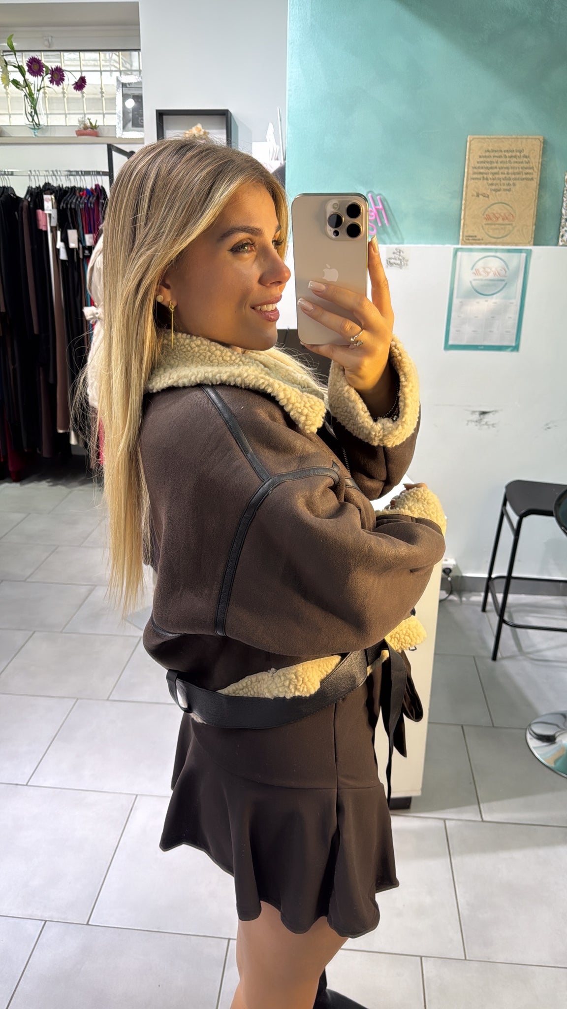 Montone con maniche in pelliccia. Finietta in vita. Taglia unica calzata regolare
